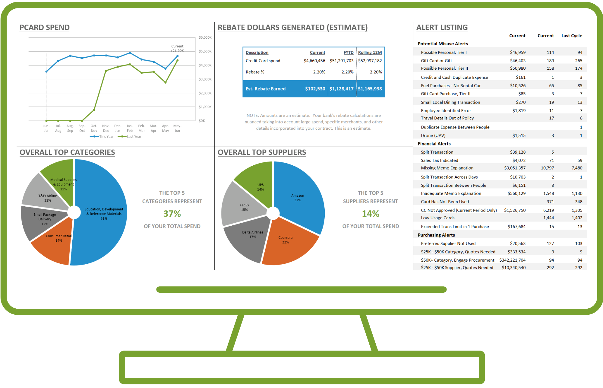 Whether your team calls it a P-Card, Purchasing Card, ProCard, or Procurement Card, Card Integrity can protect, detect, and help review, report on, and communicate spend patterns and expenses for your card program.